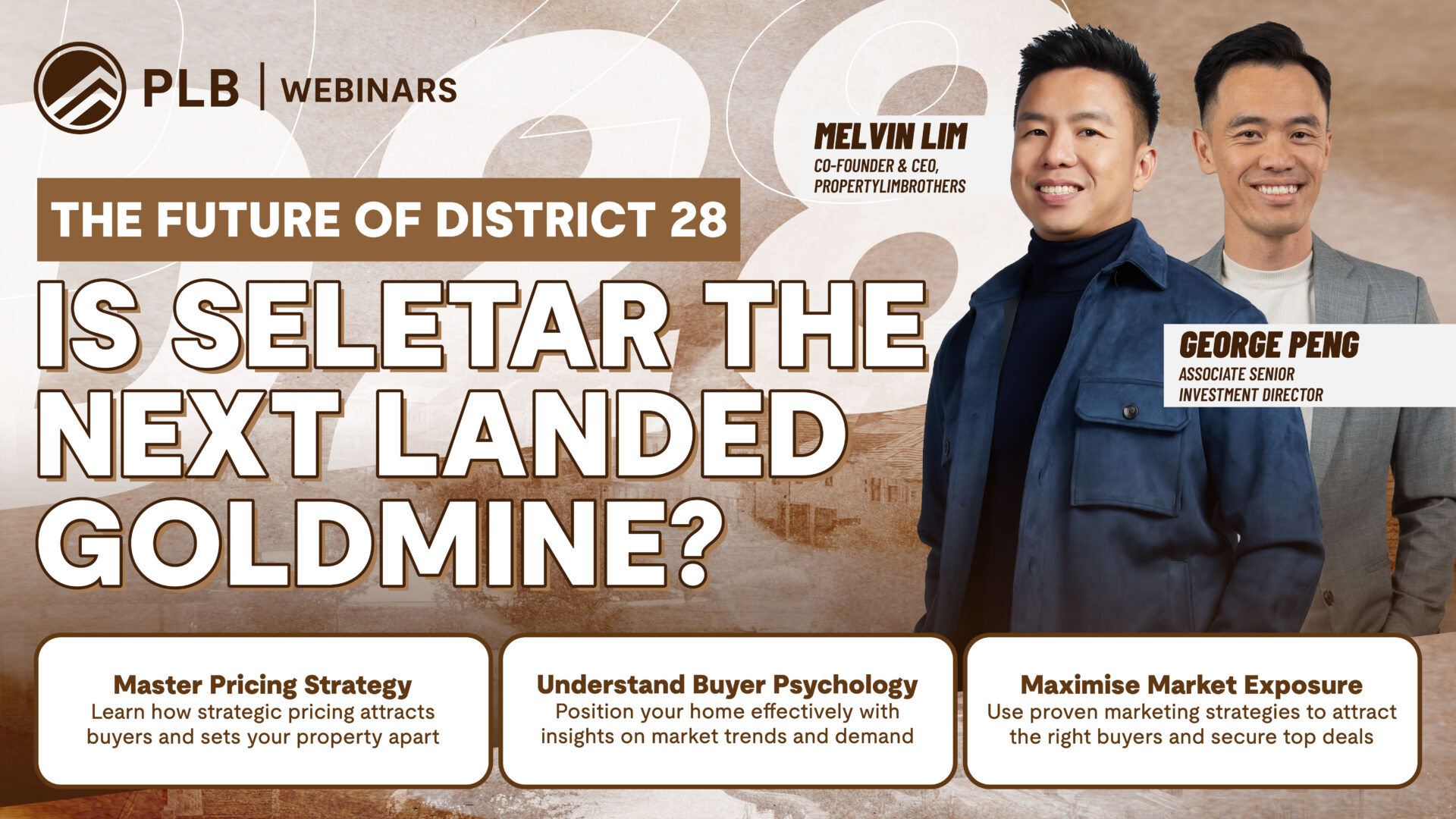 1-on-1, 60 Minute Personalised Session with Melvin Lim: Take the opportunity to sit down with Melvin Lim, Co-Founder and CEO of PropertyLimBrothers, for a explorative analysis of your real estate goals, complete with tailored strategies to guide your next steps.
